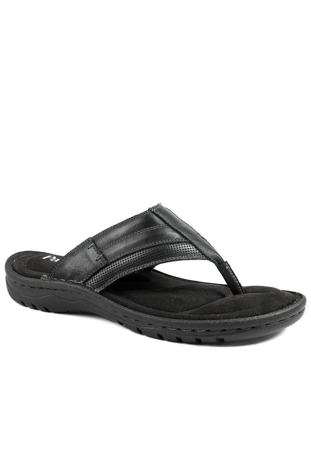 The Pavers Men's Black Leather Slip On Sandals is available in sizes 10, 11, 12, 6, 7, 8, 9.