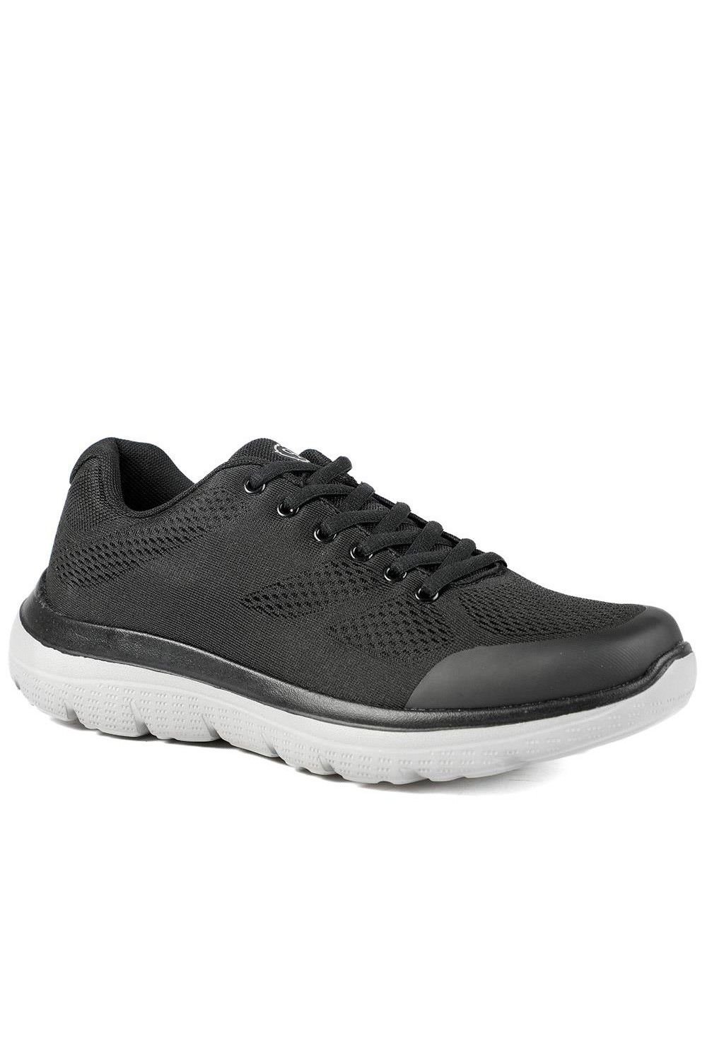 The Pavers Men's Wide Fit Memory Foam Lace Up Trainers in Black is available in sizes 10, 11, 9.