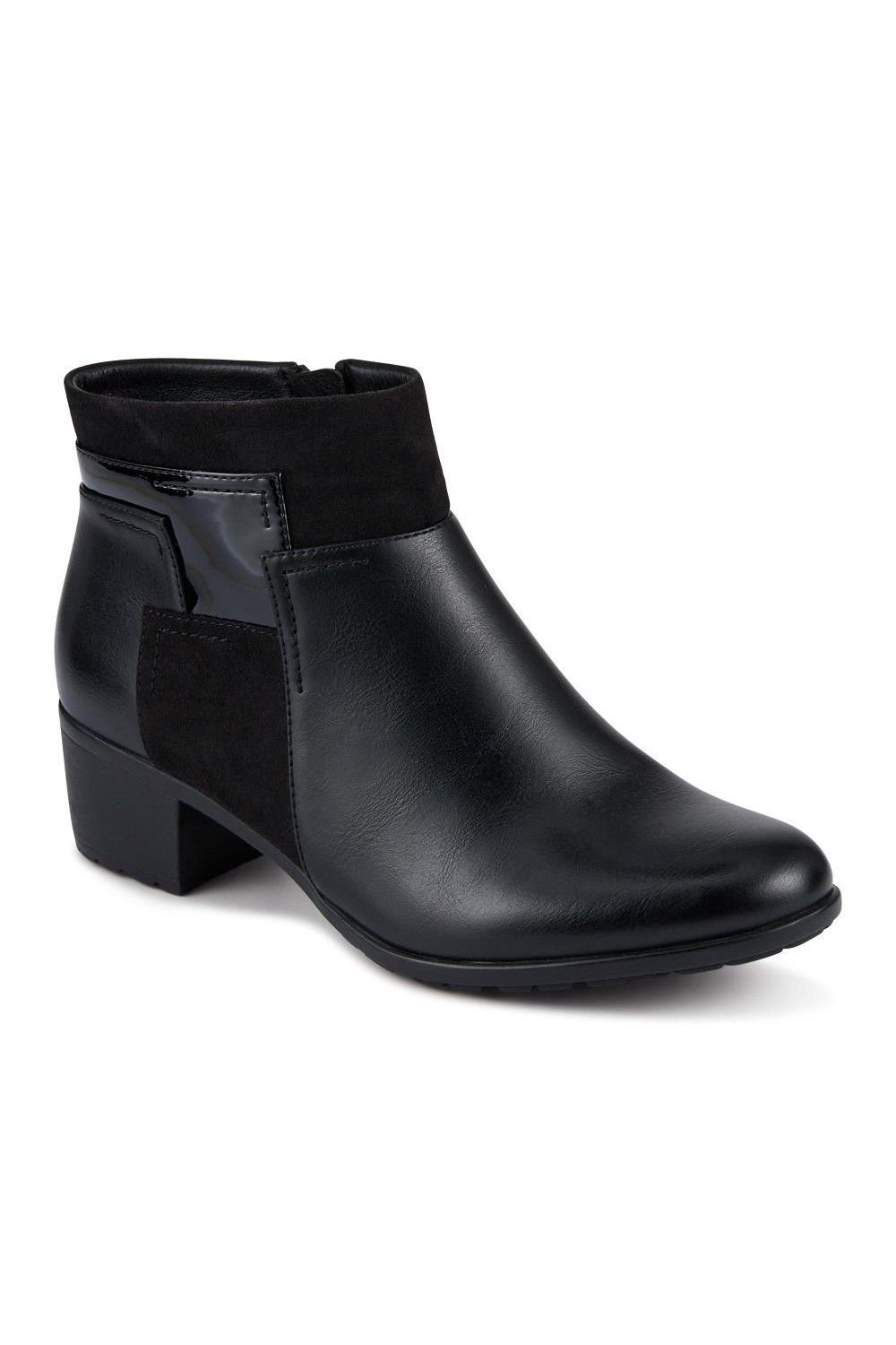 The Pavers Black Leather Block Heel Ankle Boots is ideal for work, formal, evening.
