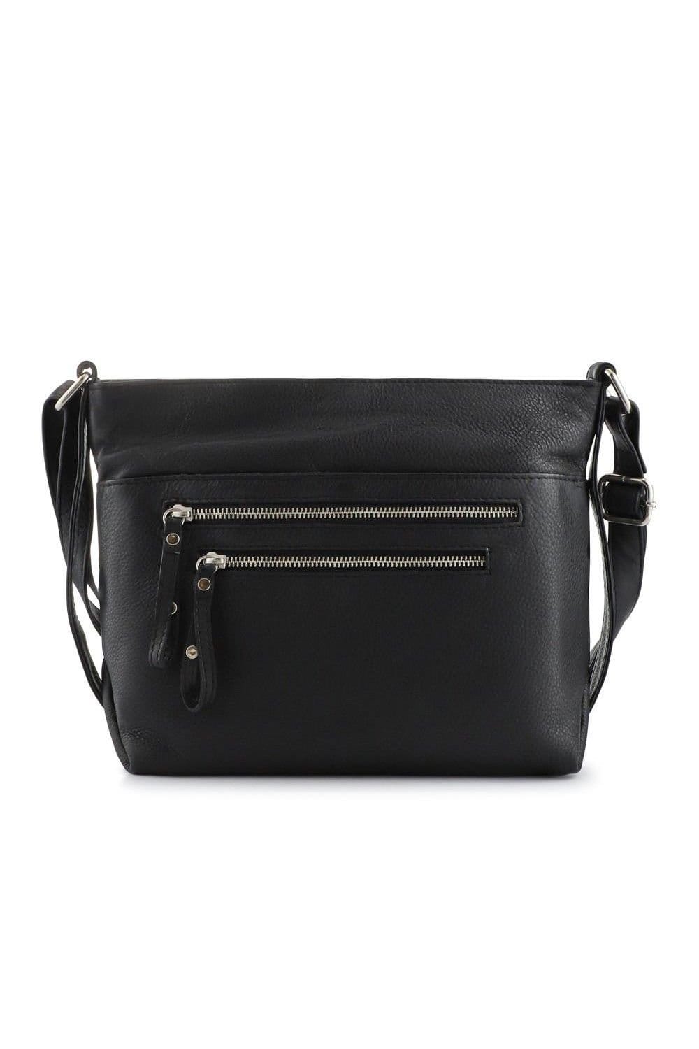 This black leather crossbody bag from Pavers features multiple zip pockets for organisation and an internal phone pocket for convenience. Fully lined for protection, it's a stylish and functional accessory.