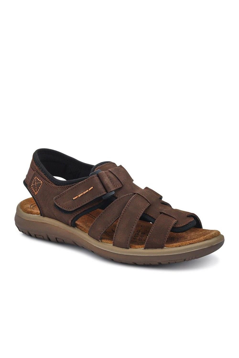 The Pavers Men's Brown Leather Touch-Fasten Sandals is available in sizes 10, 11, 12, 8, 9.