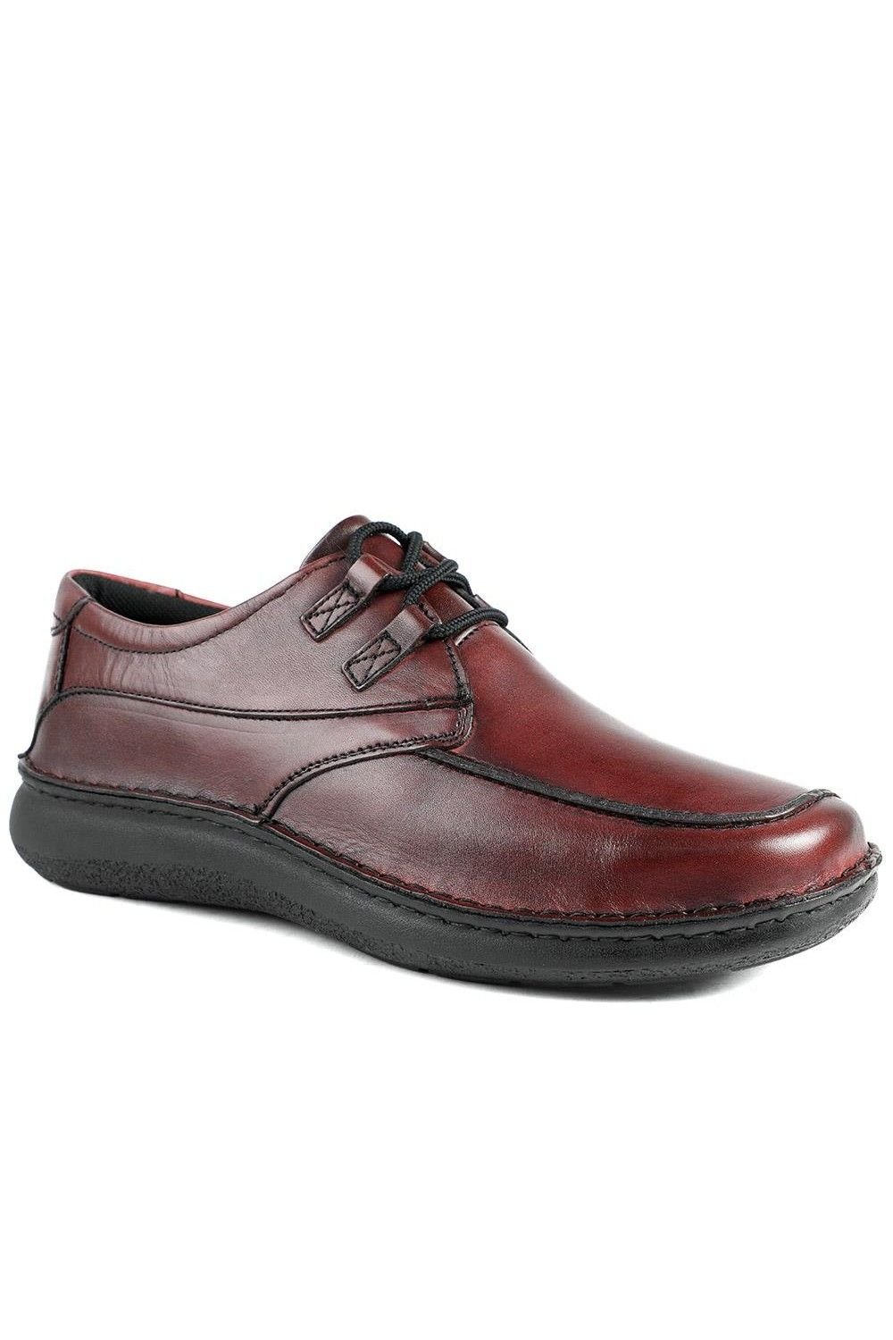 Stylish Burgundy leather casual lace-up shoes designed for everyday comfort. Featuring a wide fit for added comfort and a polished look, these shoes are perfect for casual wear.