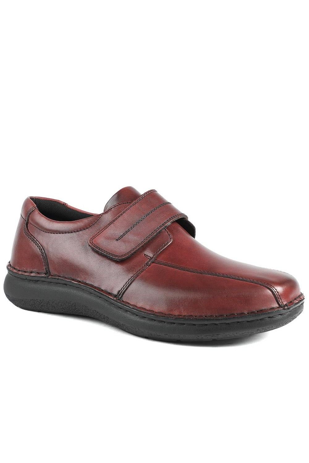 Step into effortless elegance with these Burgundy leather smart shoes. Designed with a wide fit and soft leather upper, they feel as good as they look, making them ideal for all-day wear. The clever touch-fasten strap gives you a secure, adjustable fit without compromising that polish.