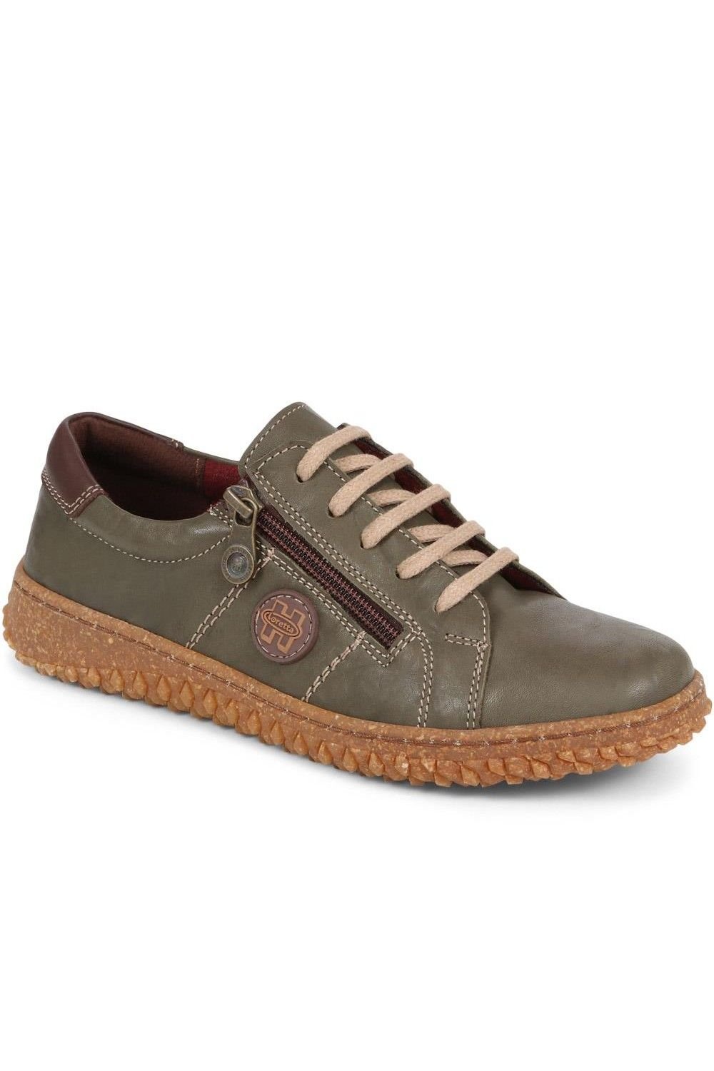 The Pavers Women's Loretta Khaki Leather Trainers is available in sizes 3, 4, 5, 6, 7, 8.