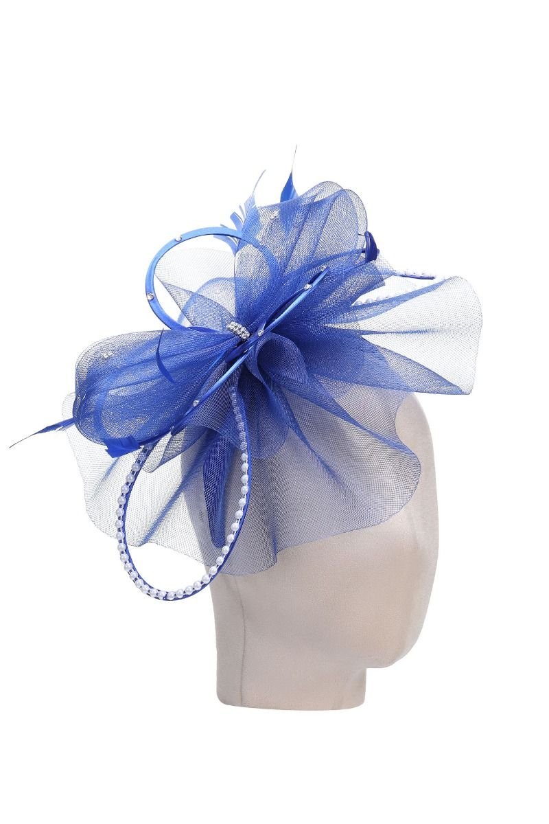 Make a grand entrance with our Jewelled Temptation fascinator, the epitome of elegance and grace. This captivating headpiece boasts lush mesh loops and delicate feather flourishes, complemented by a chic string of pearls and crystals. Its vibrant royal hue is a breath of fresh air.