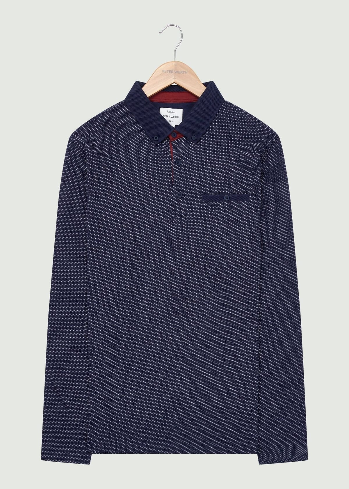 The Peter Werth Navy Long Sleeved Elliston Polo Shirt is ideal for casual, work, evening.