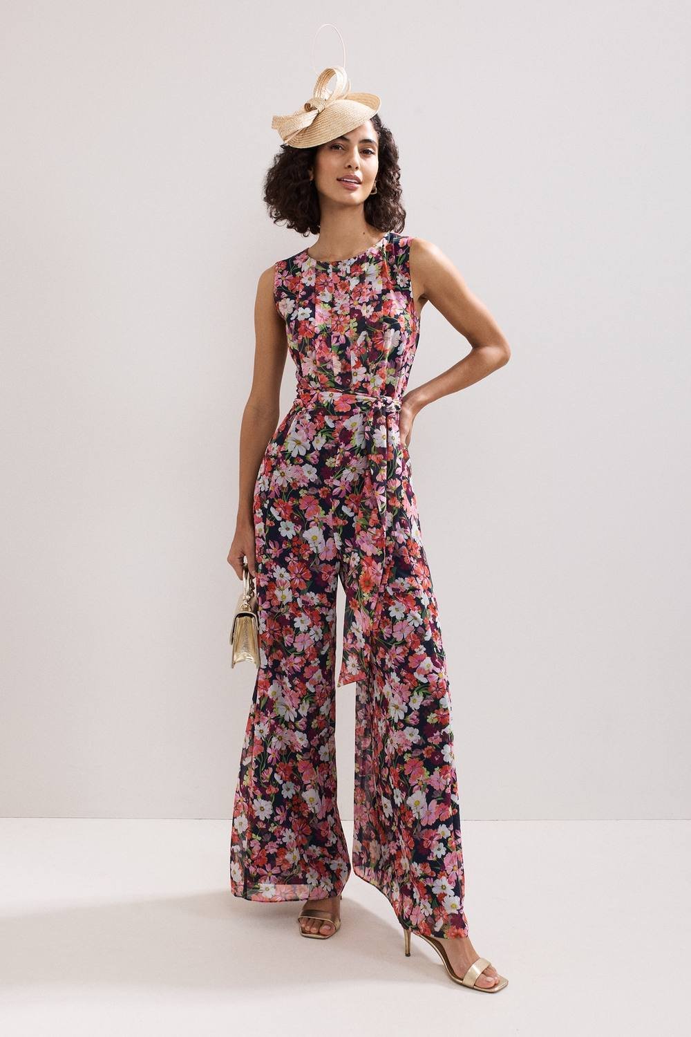 The Phase Eight Bright Pink Floral Jumpsuit is ideal for evening, party, date-night.
