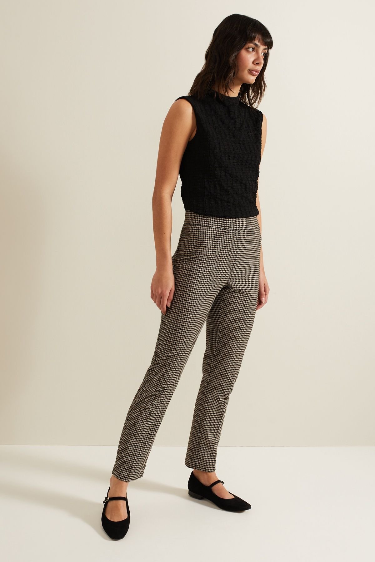 Stylish Charcoal dogtooth print slim fit trousers by Phase Eight. Featuring a subtle front seam for an effortless look, perfect for elevating your work style.