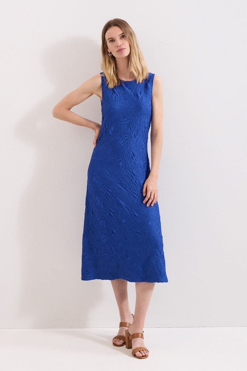 The Phase Eight Cobalt Textured Midi Dress is available in sizes 10, 12, 14, 16, 20.