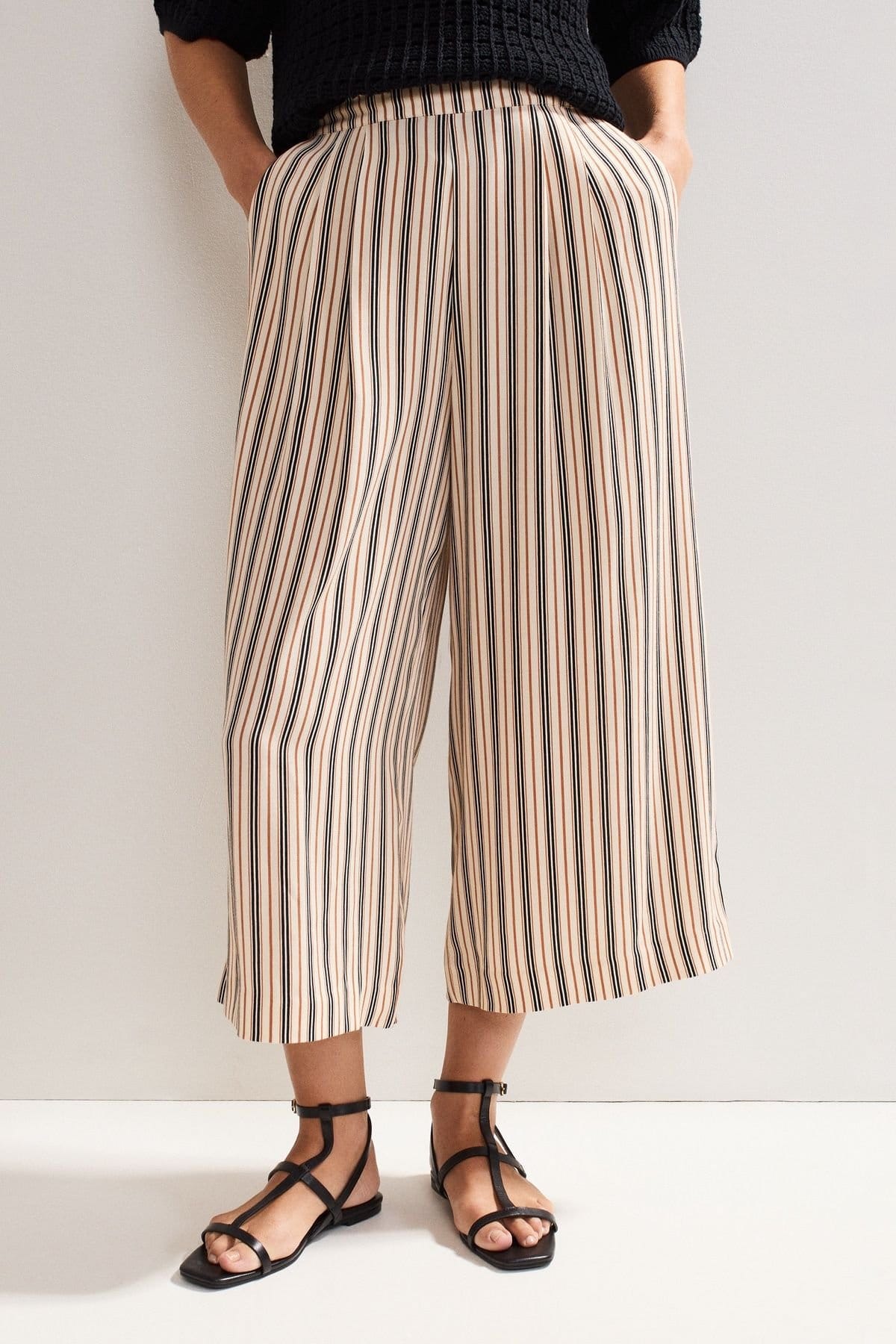 Contemporary Phase Eight culotte trousers in cream striped fabric. Featuring front pleats and a cropped, wide-leg silhouette, perfect for an effortless everyday look.