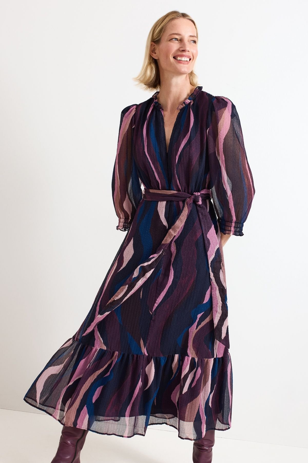 The Phase Eight Dusty Pink Swirl Puff Sleeve Midi Dress is ideal for casual, formal, evening.