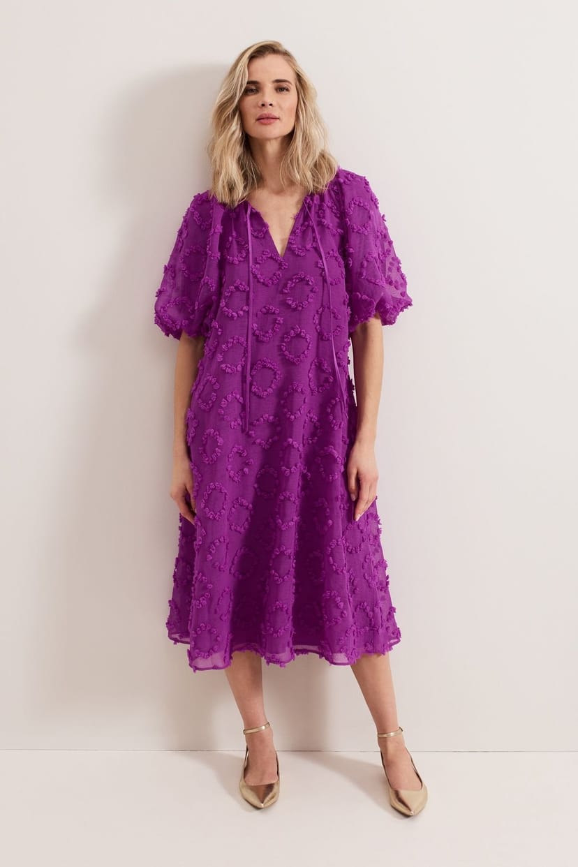 The Phase Eight Grape Textured Puff Sleeve Midi Dress is ideal for evening, celebratory, party.