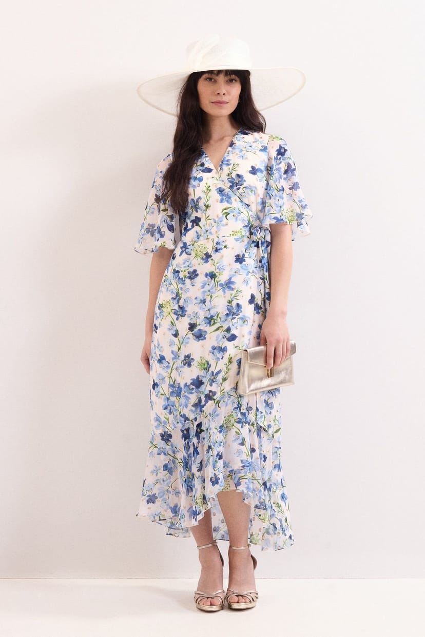 The Phase Eight Ivory Floral Midi Wrap Dress is ideal for garden wedding, evening, party.