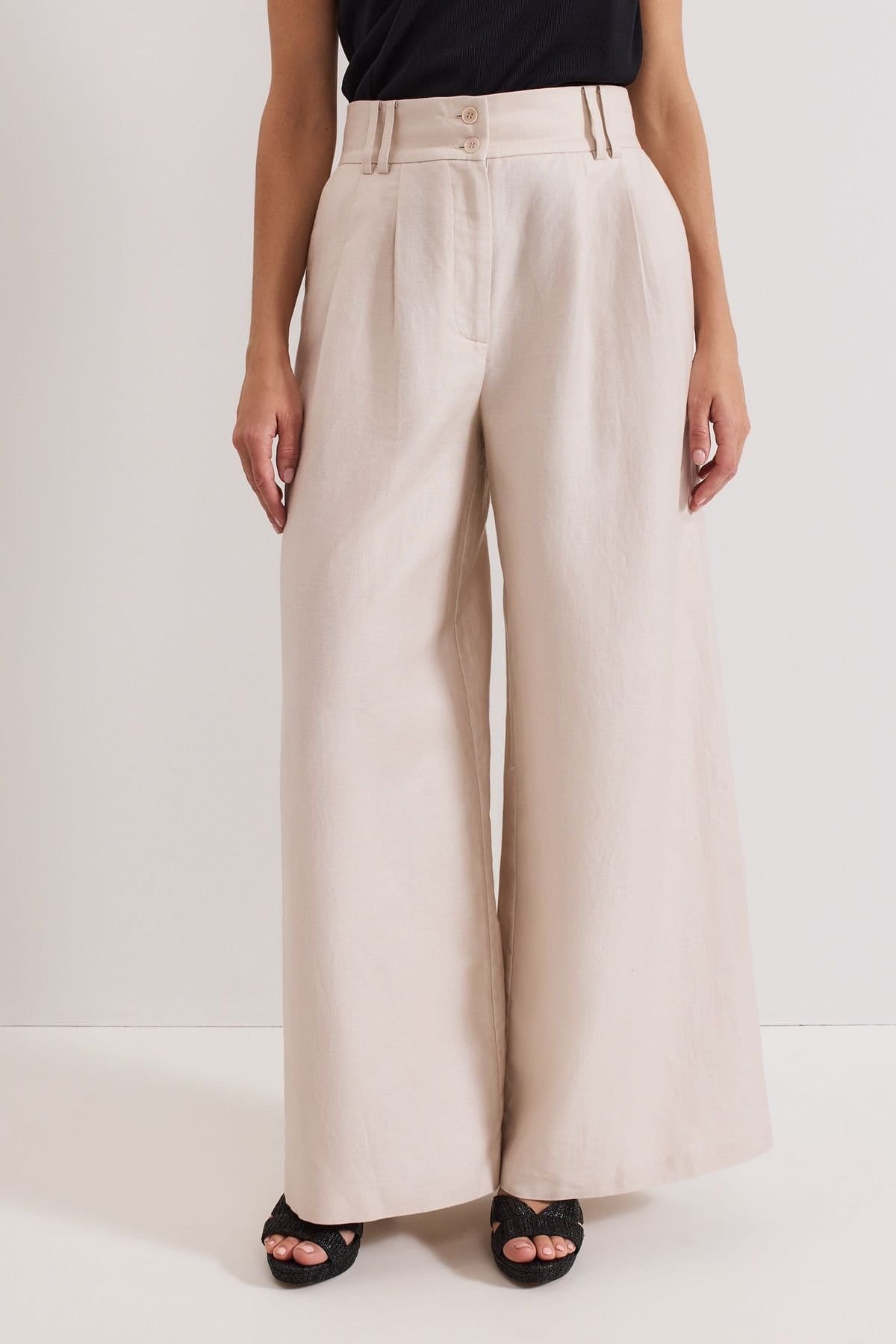 The Phase Eight Light Beige Linen Wide Leg Trousers is ideal for day-to-evening, casual, work.