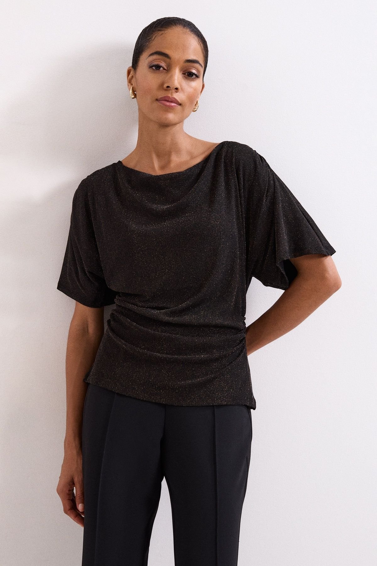 The Phase Eight Women's Martha Draped Top in Metallic Gold is available in sizes 10, 12, 14, 16, 18, 8.