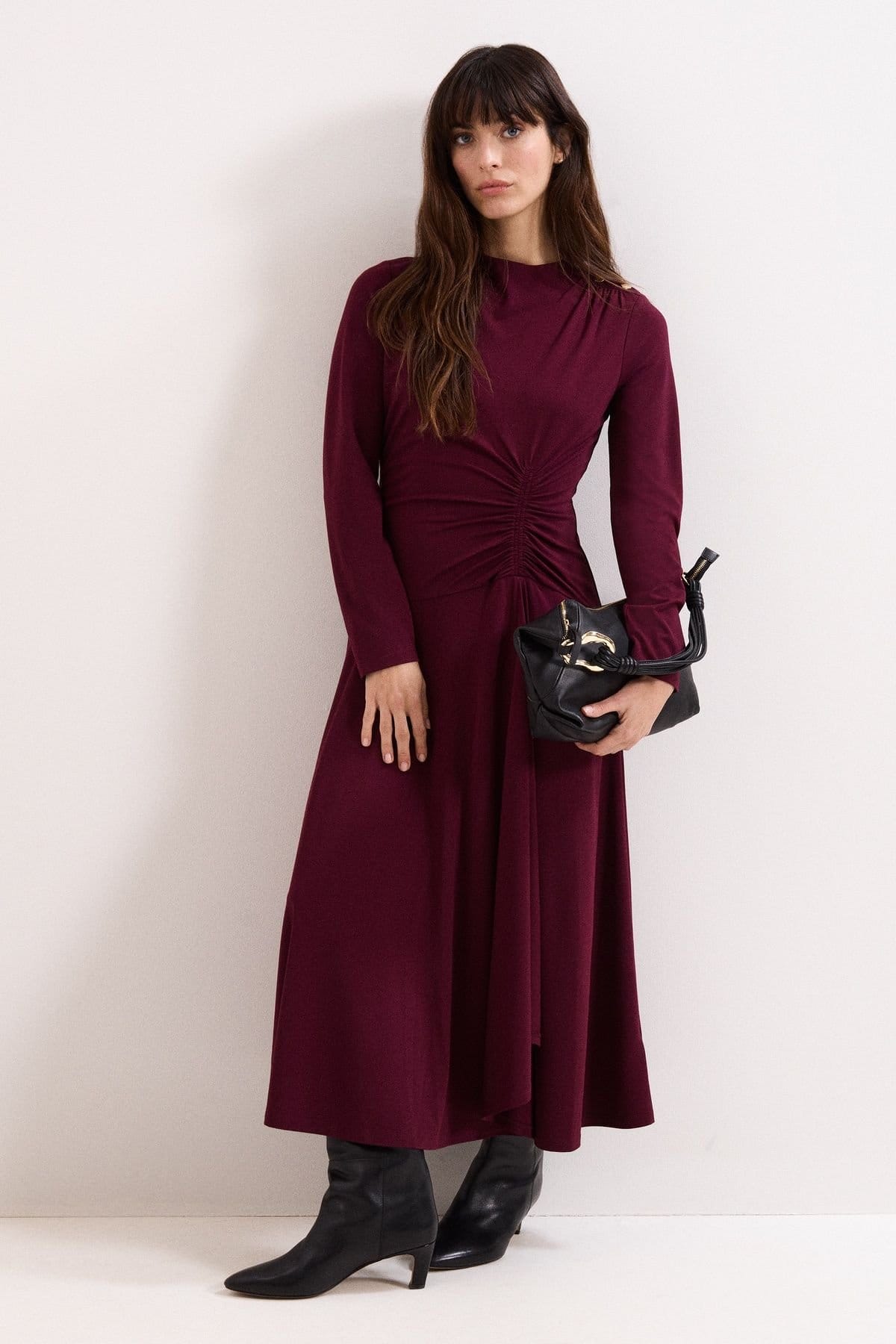 “Pair with black pointed-toe ankle boots and a black leather clutch for a chic evening look.”