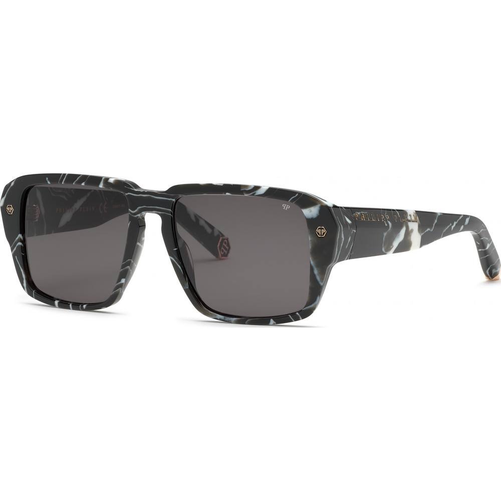 Bold square-frame sunglasses in black with a marbled pattern. Crafted by Philipp Plein, these sunglasses offer a stylish and edgy look.