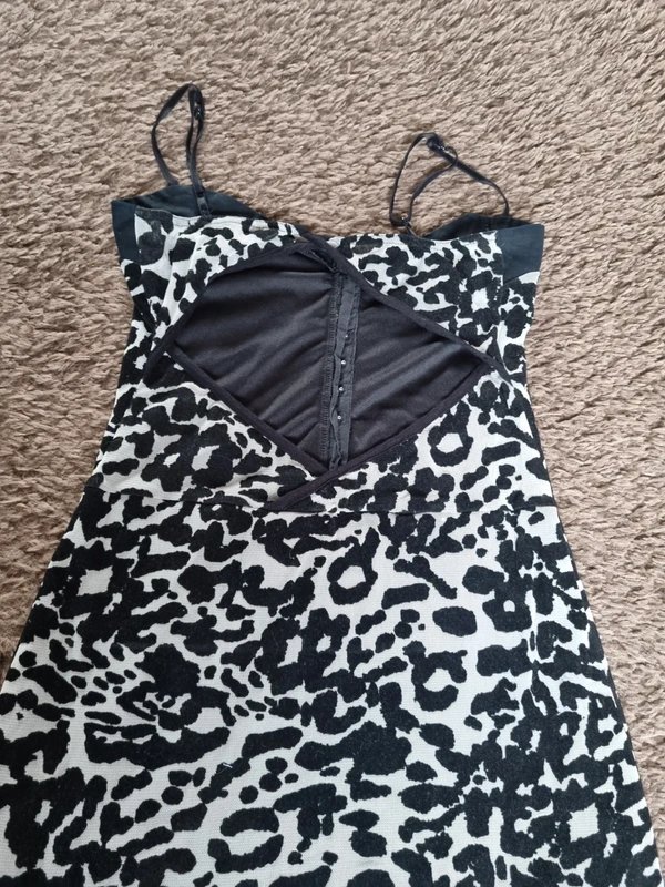 Vintage Pilot Longline Top – Size XL – a bold black-and-white animal print top with serious attitude. The longline cut makes it perfect for pairing with leggings or skinny jeans, and that front zip detail adds a touch of edge. Crafted from a stretchy, comfortable fabric, this top is ideal for casual outings or adding a touch of edge to your wardrobe.