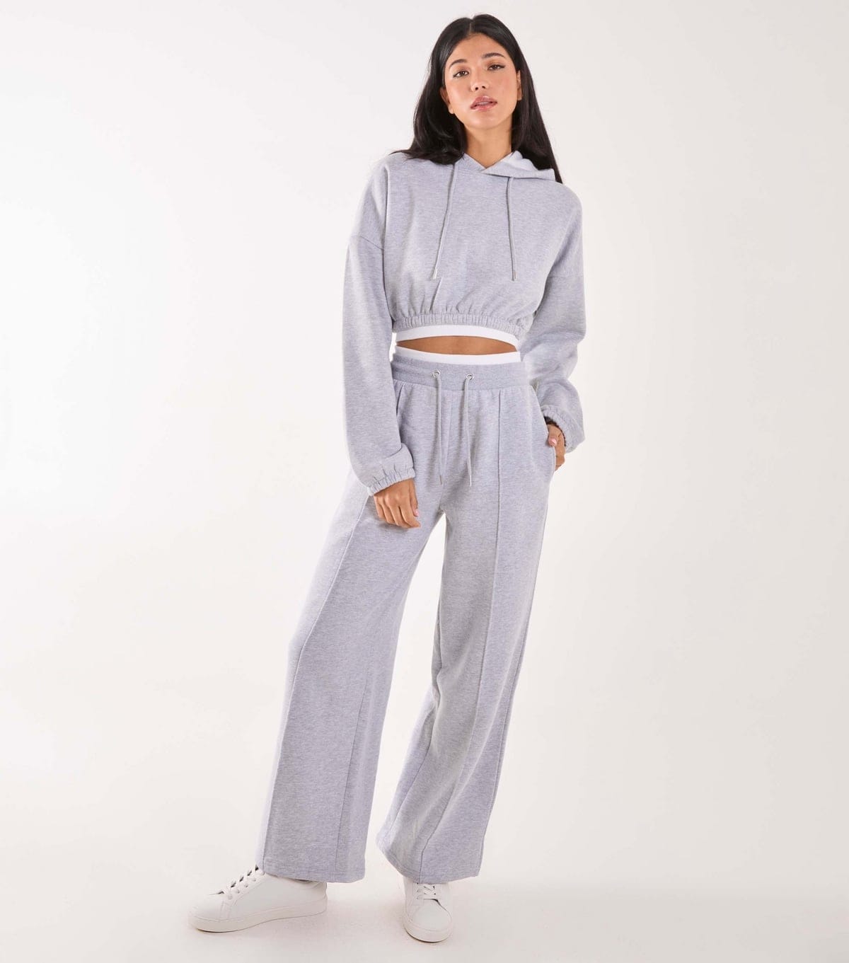 The Pink Vanilla Grey Contrast Waist Wide Leg Joggers is ideal for casual, everyday.