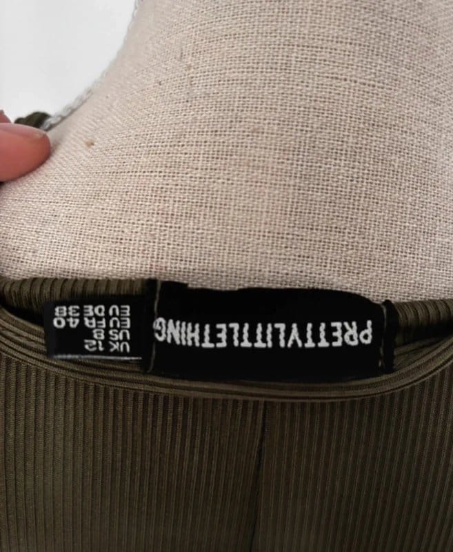 Stylish Olive/Khaki green PLT jumpsuit in size 12. Made from ribbed fabric, this jumpsuit offers a comfortable and flattering fit. Perfect for casual outings or smart-casual events.