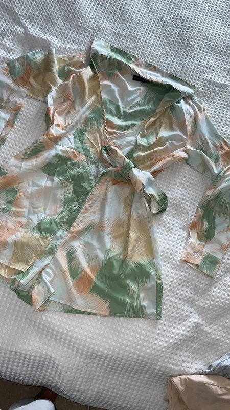 Mint Green Print Playsuit — the perfect blend of comfort and style for any occasion. Designed in a vibrant mint green print, this long-sleeve playsuit features a wrap-around belt and a relaxed fit. Crafted from lightweight silk, it offers a sheer and flowy feel. Ideal for casual outings, weekend brunches, or even a night out.