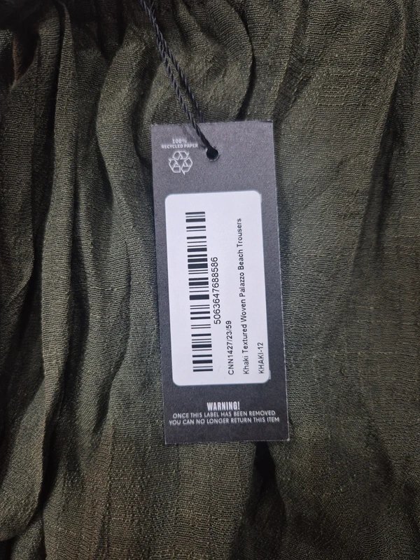 The PLT Khaki Palazzo Beach Trousers is available in sizes L.