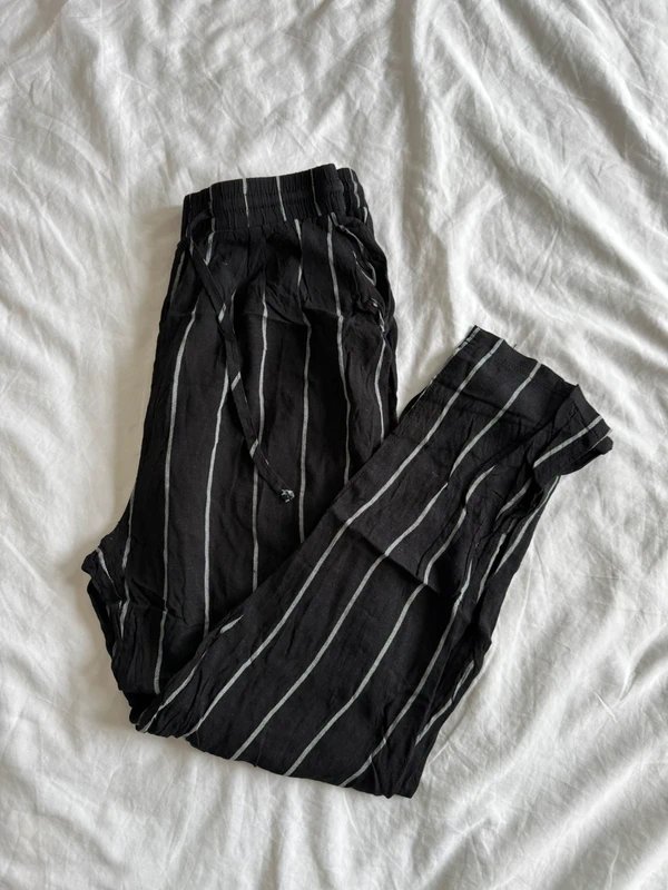The PLT Striped Relaxed Trouser in Black and White is available in sizes S.