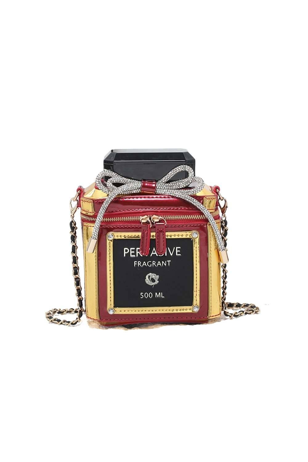 The Pluspup Red Perfume Bottle Shoulder Bag with Chain Strap is ideal for evening, party, date-night.