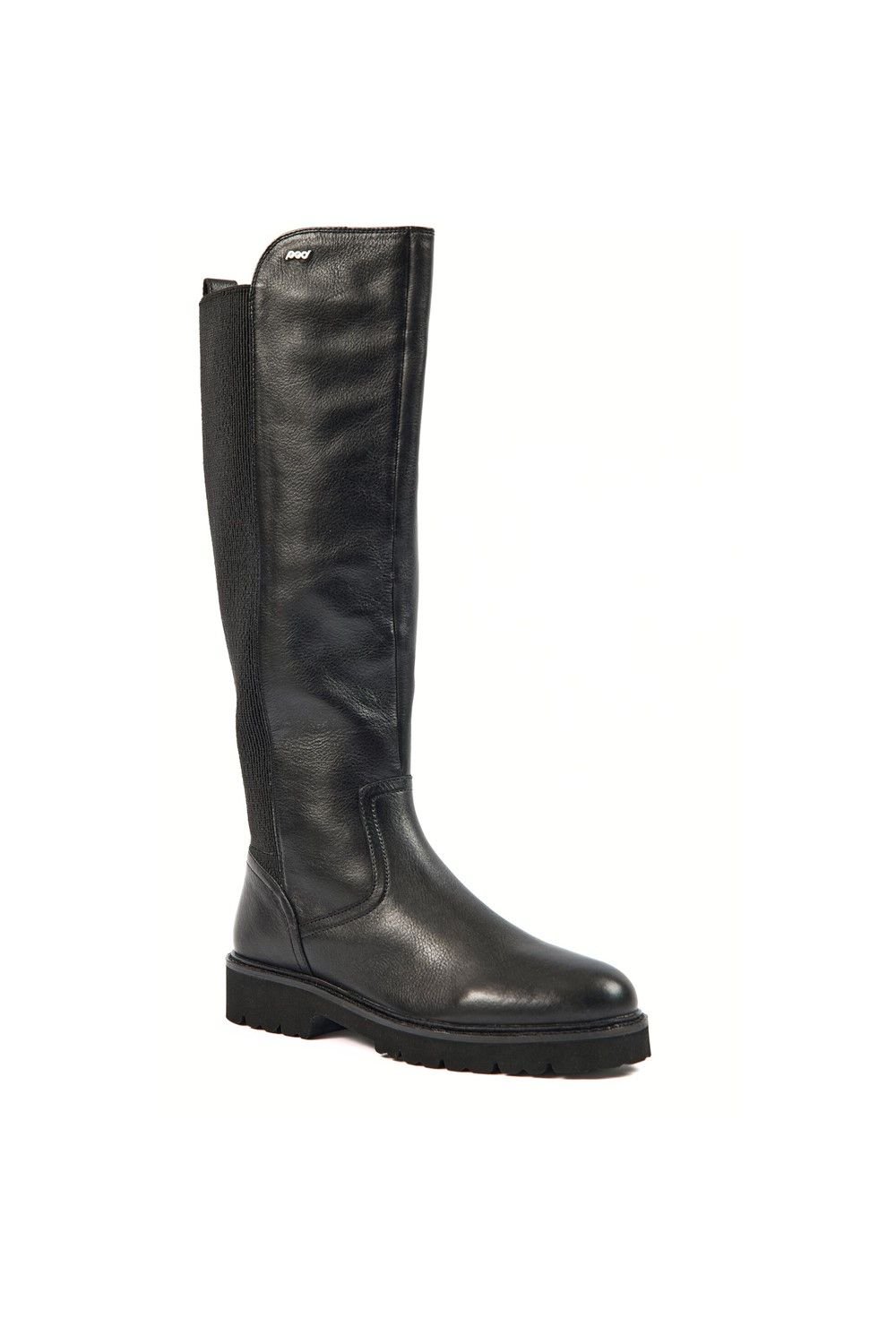 Contemporary tall boot with a timeless design. Made in premium leather, these boots have an elasticated back for a comfortable fit around the leg and a zip fastening for an effortless on-off. The lightweight cleated TPR sole.