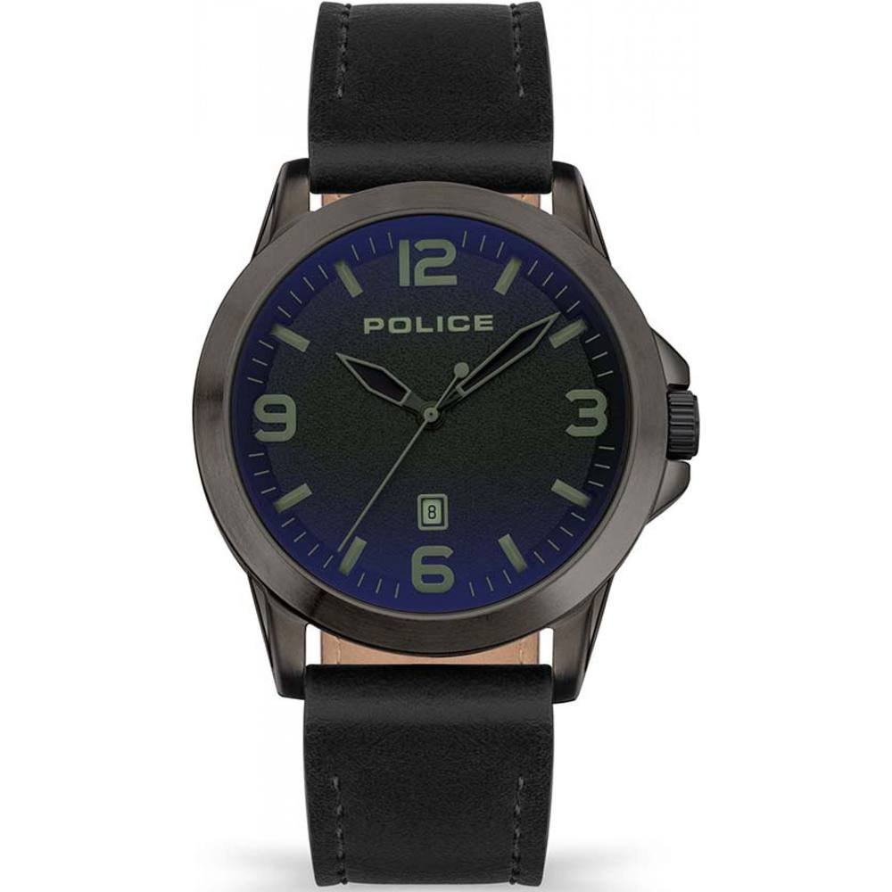 This Police Cliff Watch features a black dial and a black leather strap, offering a practical and hardwearing design for all occasions. The watch is a meticulously crafted timepiece with a quartz movement.