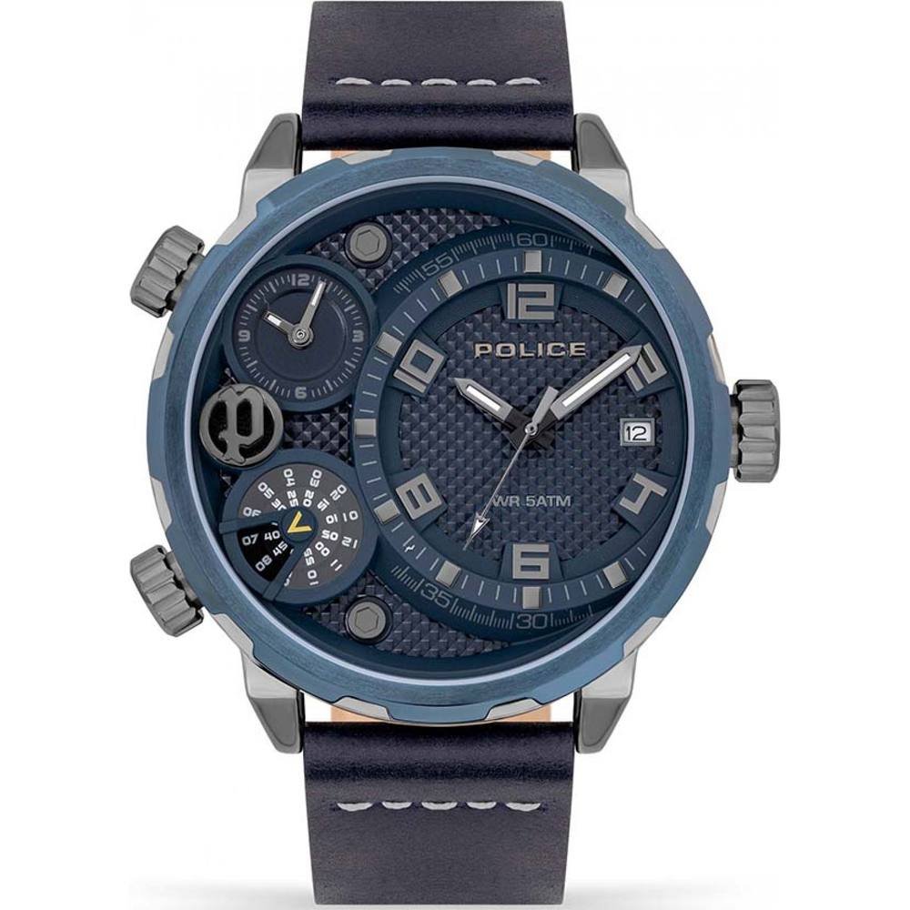 Stylish blue Police Ray 51mm Quartz Watch with a textured dial and leather strap. Features multiple sub-dials and a robust design for everyday wear.