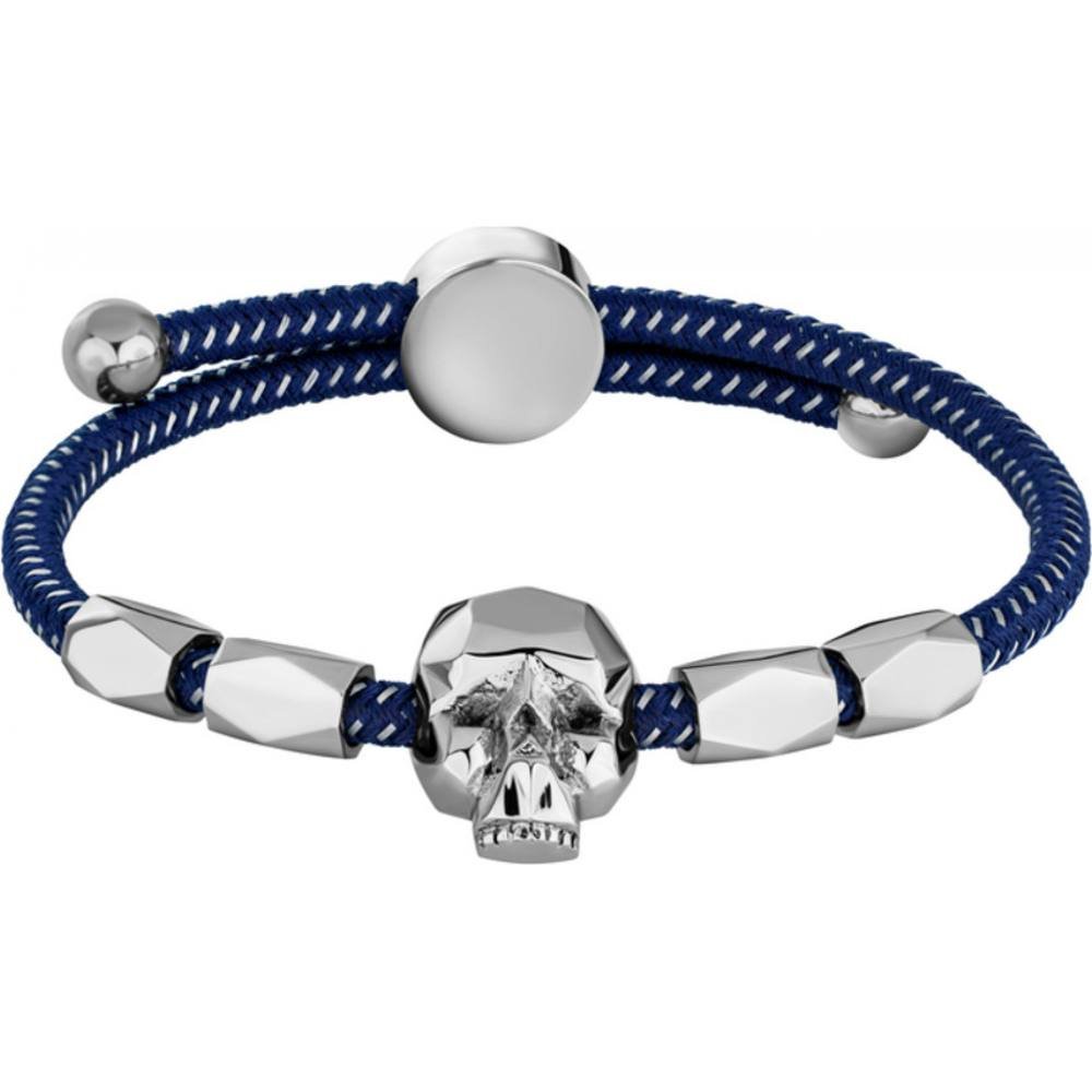Stylish blue nylon bracelet with a skull charm and silver-tone accents. Designed for a bold, edgy look, this Police bracelet is both durable and fashionable.
