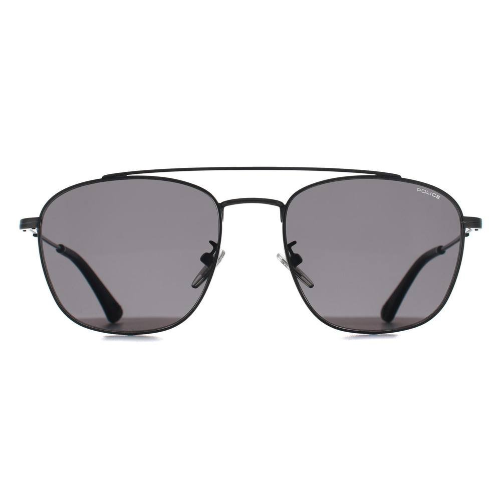 Stylish aviator sunglasses with a square shape made from lightweight metal. The double bridge design and adjustable nose pads provide a comfortable fit. The sender temples are embellished with the Police logo.