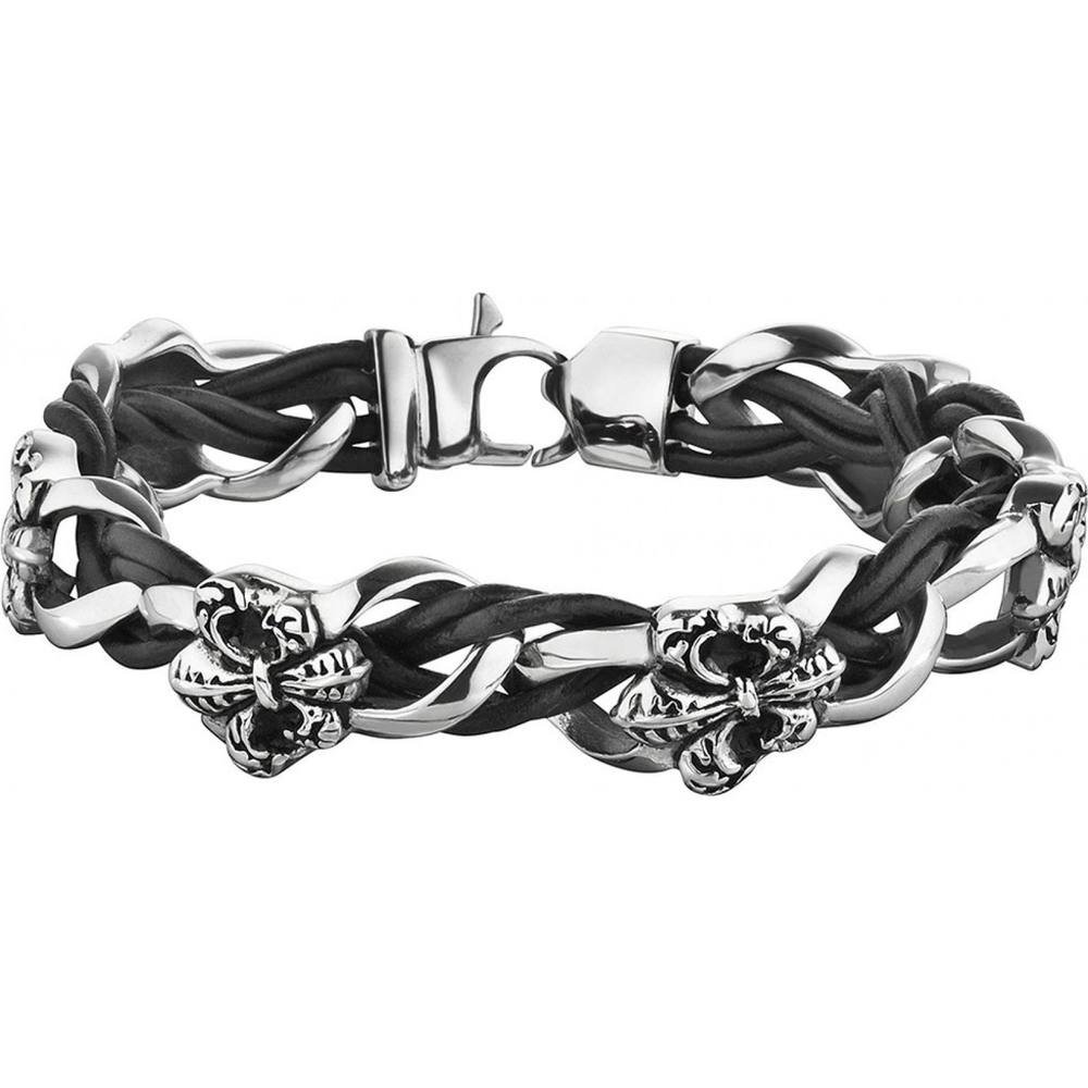 Elegant multicolor bracelet from Police, combining black leather with silver accents. Features intricate floral designs and a clasp closure for a secure fit. Ideal for adding a touch of sophistication to any outfit.