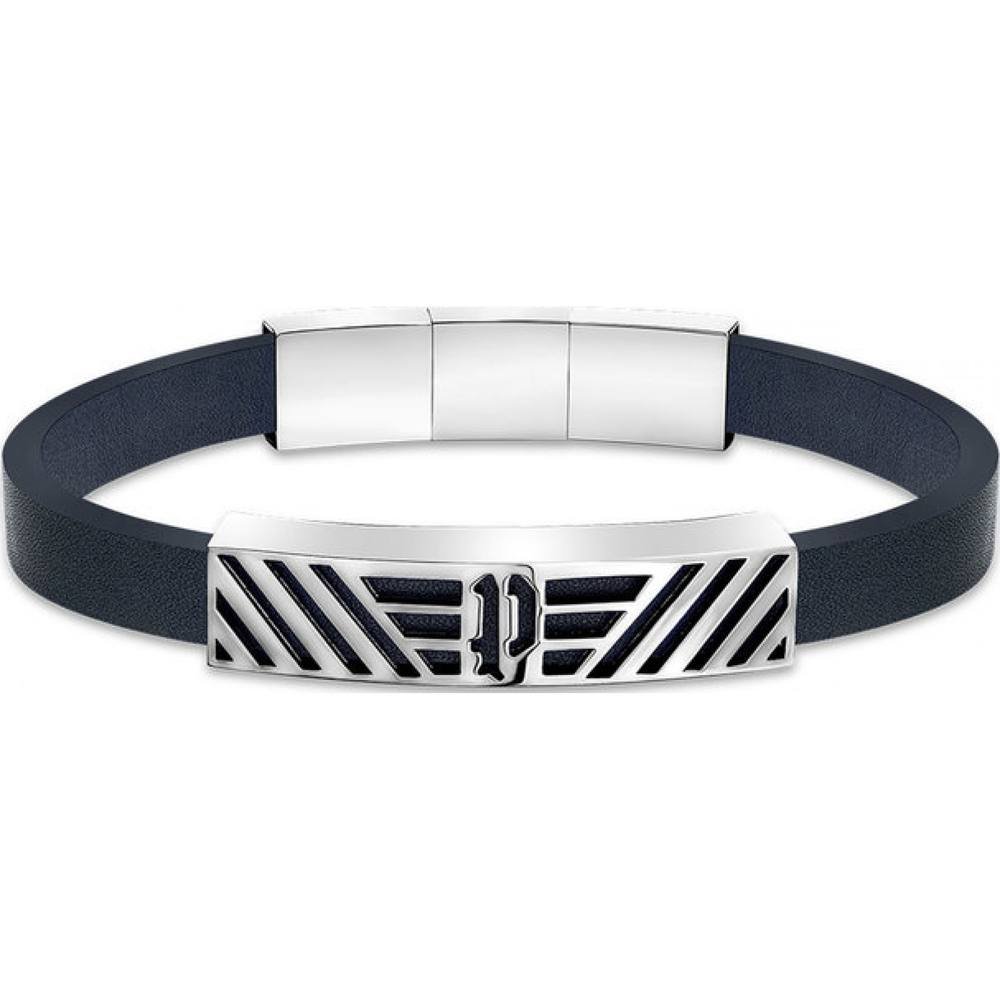 Stylish Navy leather bracelet from Police, featuring a sleek design with a silver clasp and logo. Perfect for adding a touch of sophistication to any outfit.