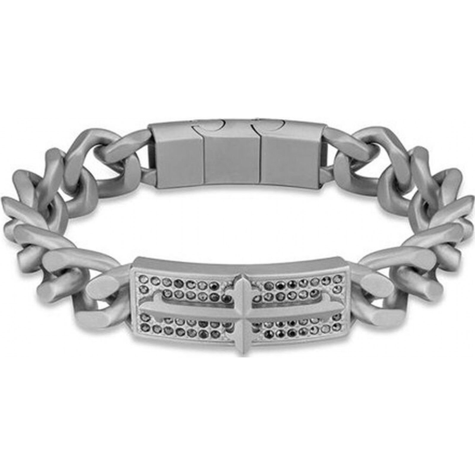Timeless silver bracelet from Police, featuring a chain-link design with a cross-shaped centerpiece adorned with crystals. Crafted for durability and style.