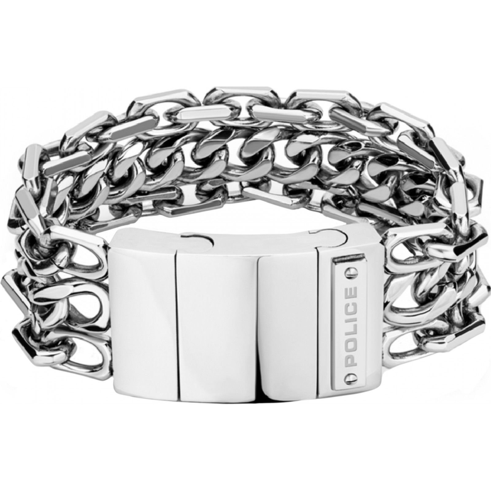 Stylish silver chain bracelet from Police, featuring a robust chain link design and a sleek rectangular clasp. Ideal for adding a touch of edginess to any outfit.