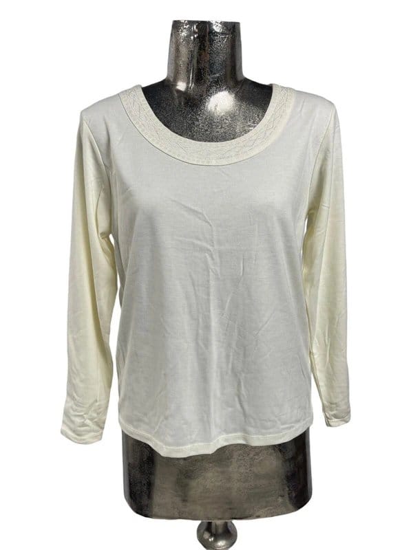 The Poppy Cream Cotton Long-Sleeve T-Shirt with Sequins is ideal for casual, everyday.