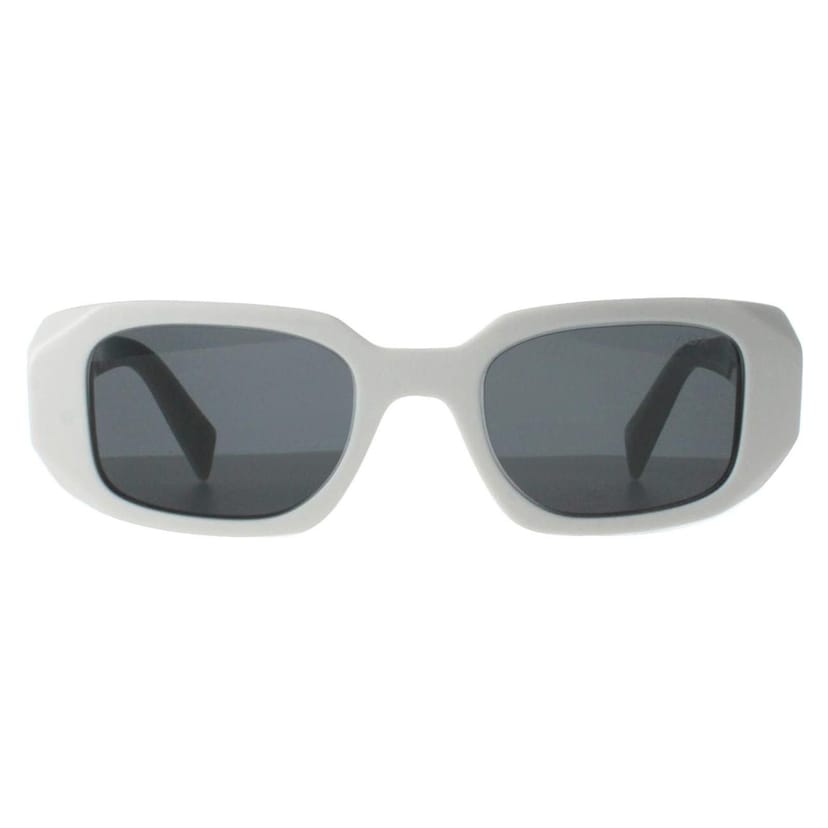 View Debenhams's returns policySleek Prada Rectangle Talc Dark Grey PR17WS sunglasses in white with black lenses. Crafted from high-quality acetate, these sunglasses feature a rectangular frame and Prada logo on the temples. Ideal for any occasion, offering both style and durability.