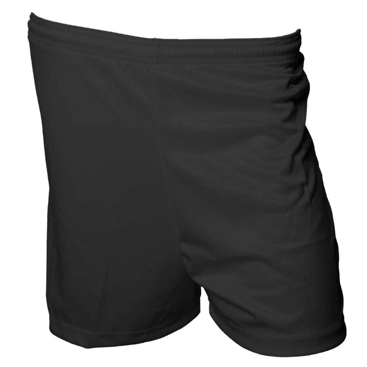 Stylish black micro-stripe football shorts made from 100% soft-touch polyester. The elasticated waistband with a drawcord ensures a secure fit, perfect for training or playing.