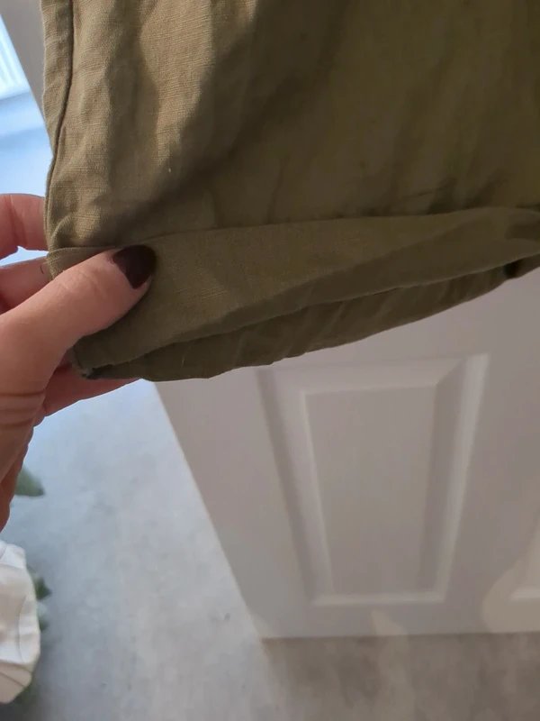 The Pretty Lavish Khaki Linen Playsuit in Size 10 is made from linen.