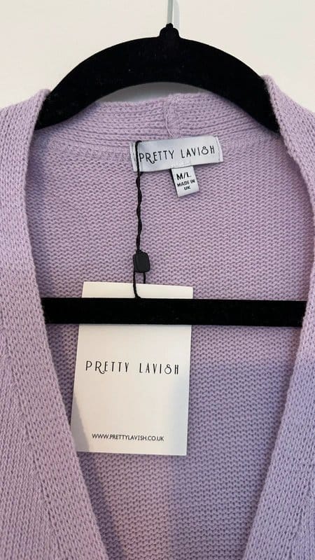 The Pretty Lavish Lilac Wrap Cardigan Dress is available in sizes M.
