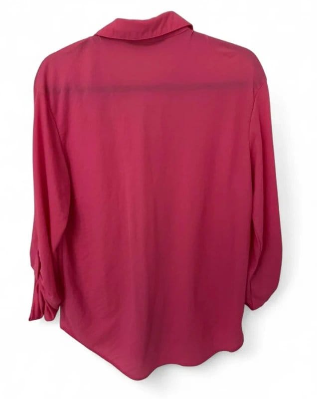Stylish pink buttoned shirt with foldable sleeves and a classic collar. Made from a lightweight, slightly sheer fabric, this shirt is perfect for layering or wearing on its own.