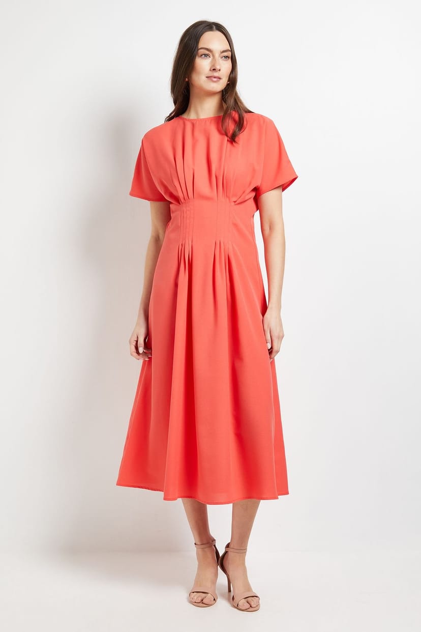The Principles Coral Pleated Waist Dress is available in sizes 12, 14, 16, 18, 20.