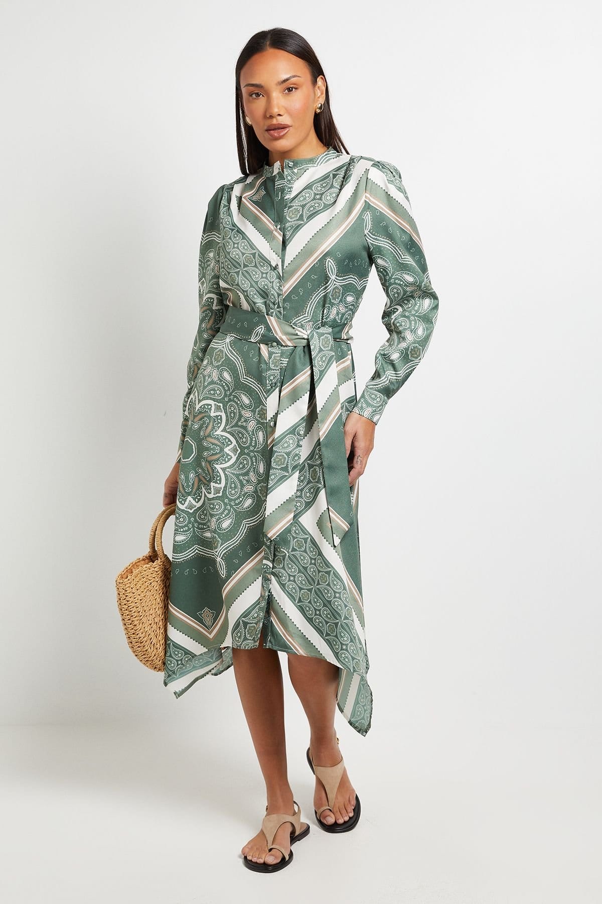 “Pair with tan leather sandals and a woven tote bag for a chic daytime look.”