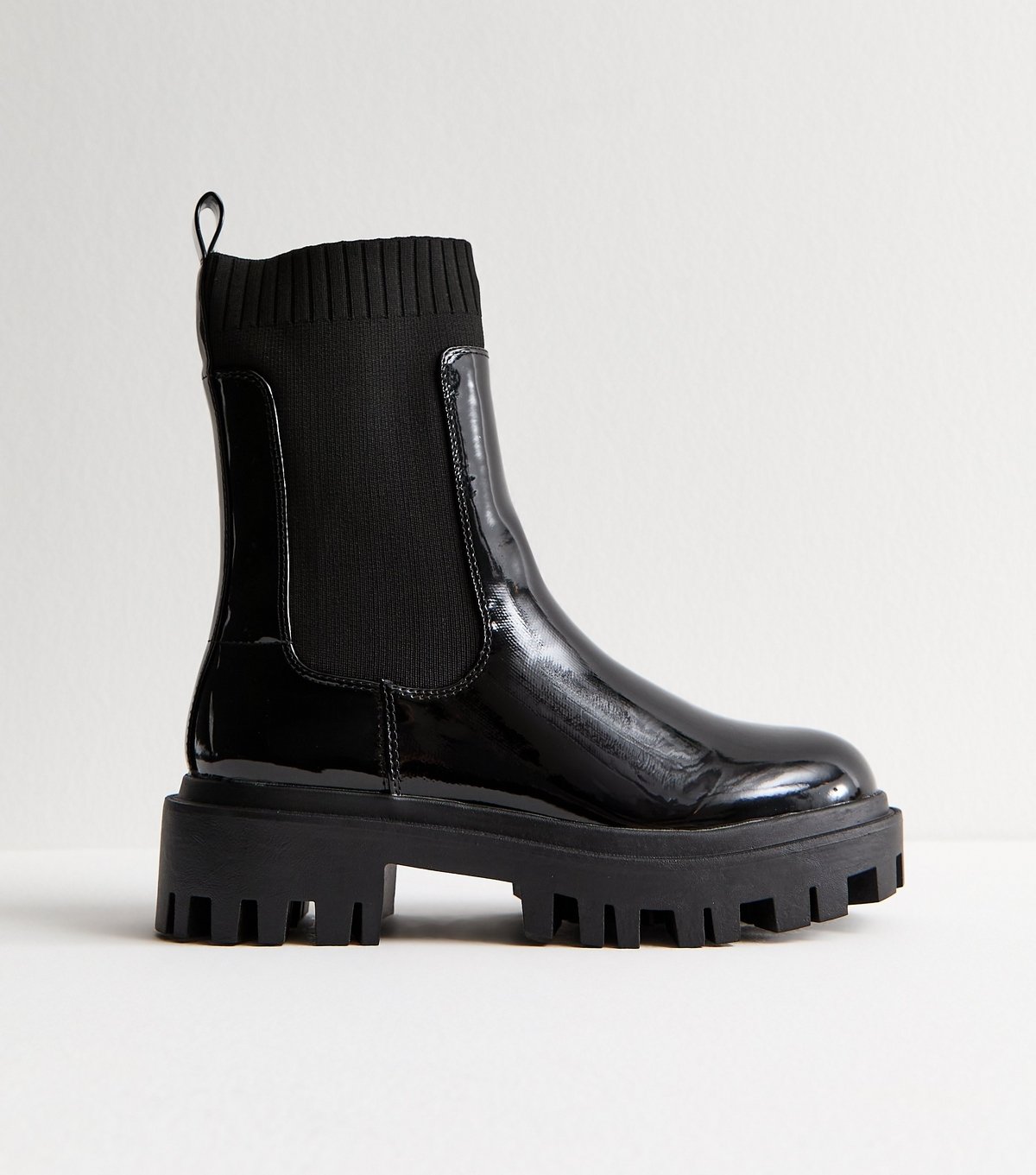 These patent faux leather boots are perfect for comfortable evening wear. Their chunky style makes them great for grungy styles. Featuring a round toe and elasticated panel fastening, they offer both style and ease of wear.