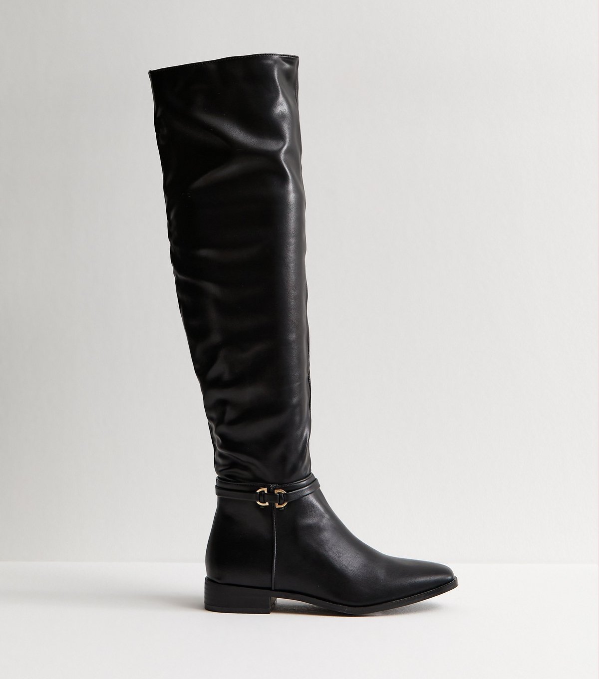Strut in style with Public Desire's long black faux leather boots featuring a sleek buckle detail. Ideal for weekend outings or adding a bold edge to your daily ensemble.