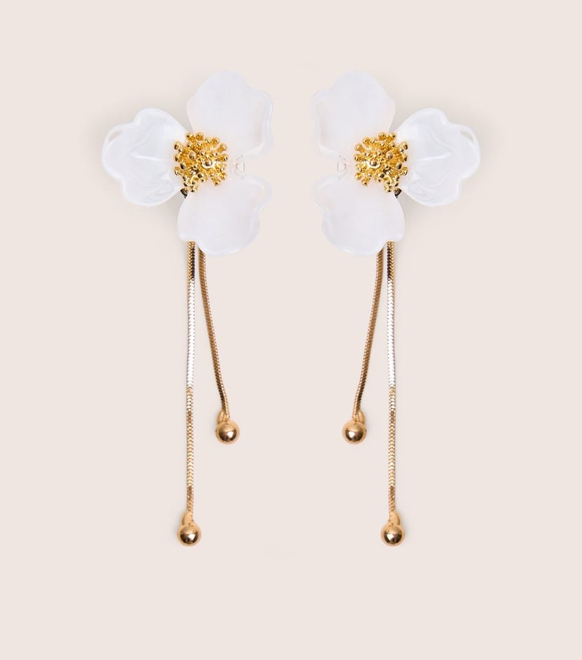 The Public Desire Cream Flower Drop Earrings is made from resin, gold-tone metal.