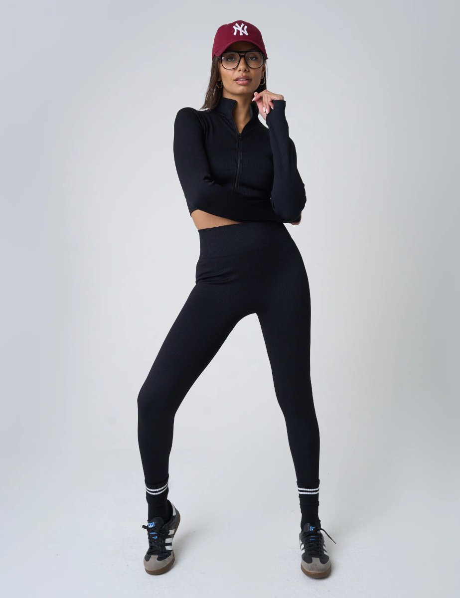 Achieve your dream silhouette with our Ribbed High Waisted Bum Lift Leggings in Black! The ribbed fabric and high waist design enhance your curves for a lifted look. Perfect for working out or dressing up, these leggings are a must-have for any wardrobe.