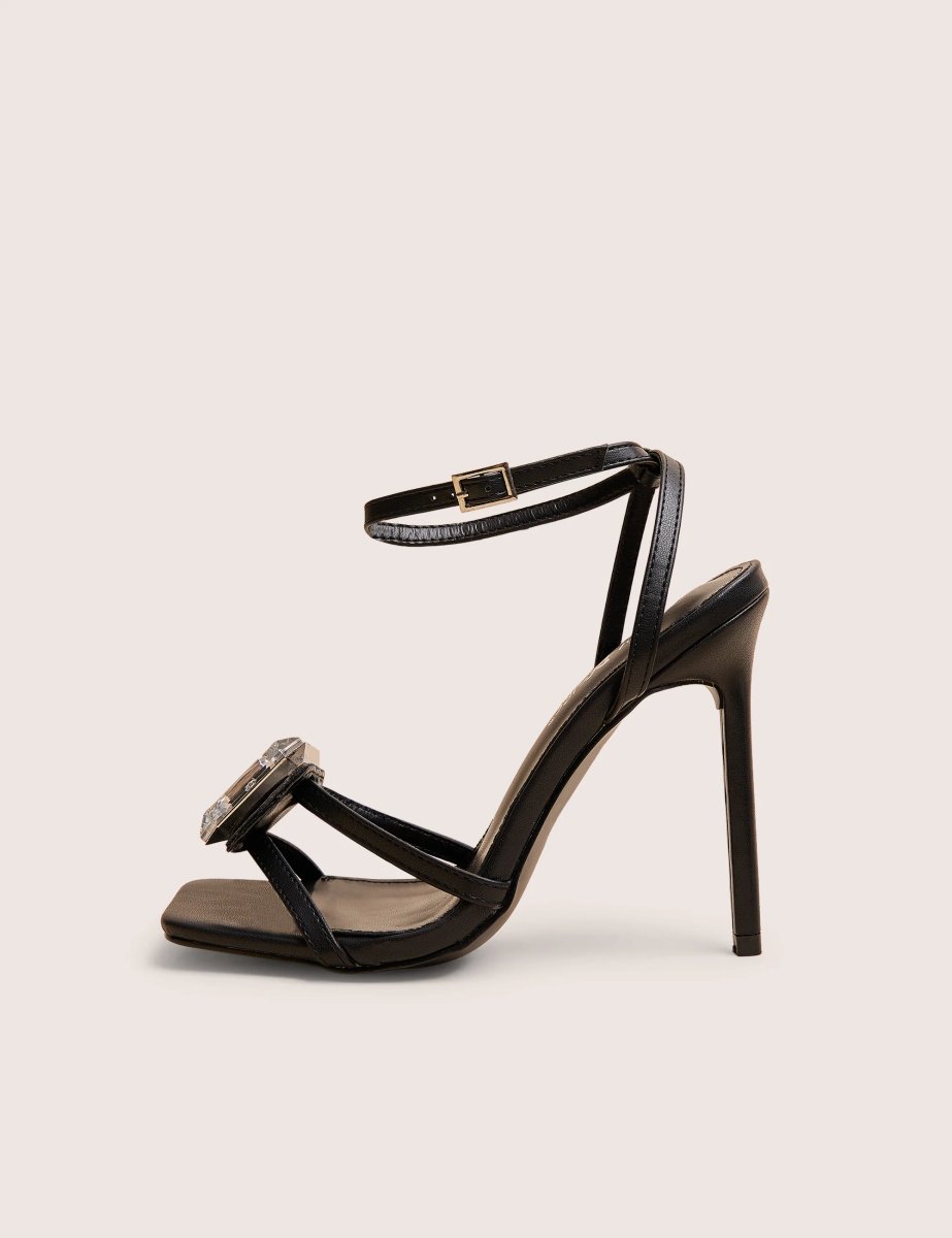 The Public Desire Jewel Detail High Heel in Black is available in sizes 3, 4, 5, 6, 7, 8, 9.